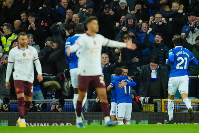 Manchester City åpnet best, men Everton spilte med selvtillit og tvang City til å gjøre feil. Etter 28 minutter sendte Rodri en feilpasning på egen banehalvdel. Den kunne McNeill snappe opp. Han gikk mot dødlinjen og sendte et innlegg til Harrison som kunne bredside ballen i mål, til skrekk og gru for Citys tilhengere. Bedre ble det ikke da Stones måtte byttes ut før pause grunnet skade. "Tannløse" var ekspert Lars Tjærnås beskrivelse av gjestene i første omgang.