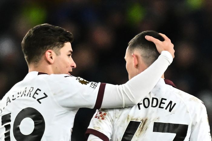 Manchester City starter slik: Ederson, Walker, Stones, Akanji, Ake, Rodrigo, Nunes, Bernardo, Foden, Grealish, Alvarez