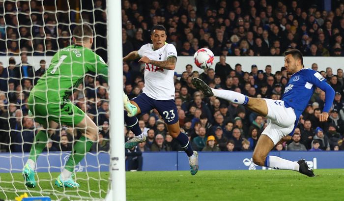 Tottenham rydder unna til slutt og prøver å kontre. Everton er raskt tilbake på egen halvdel og stopper overgangen.