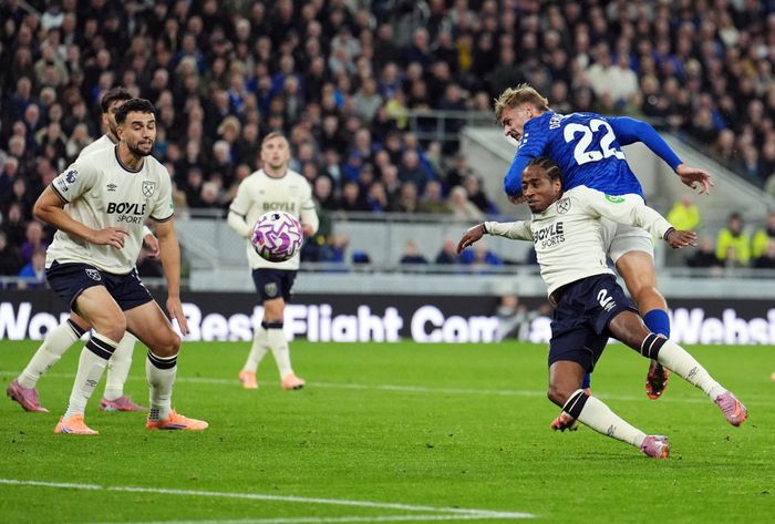 West Ham med to skuddforsøk på noen sekunder, men Everton kommer seg i veien begge gangene.