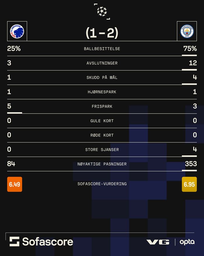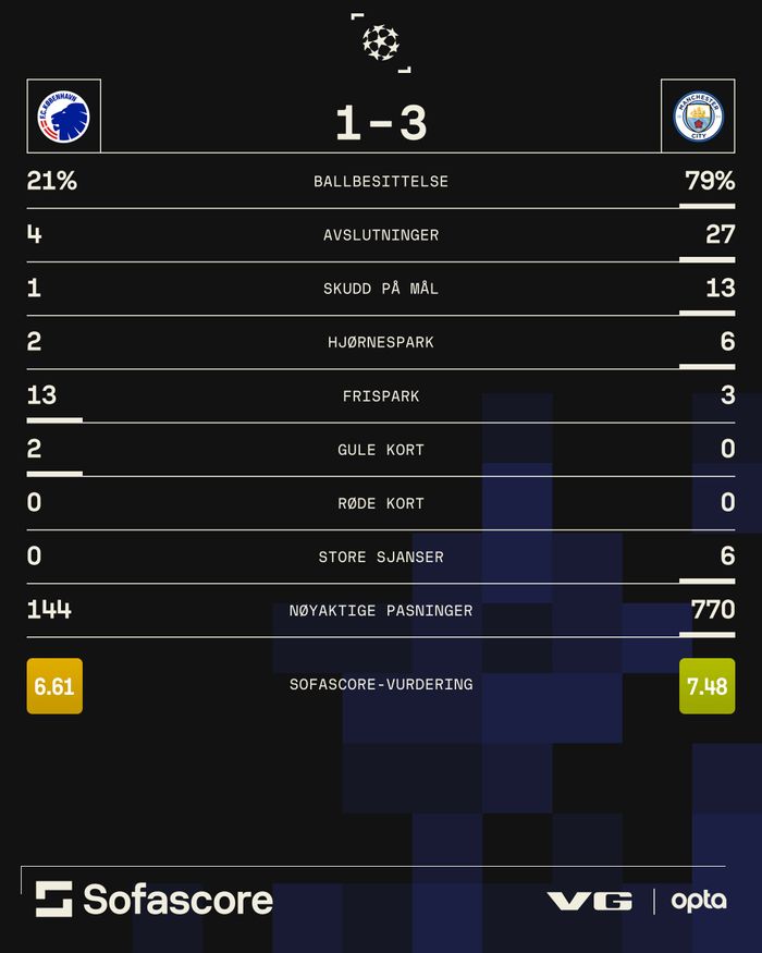 Veldig ensidig dekning her i favør City. FCK har så absolutt levert godkjent her.