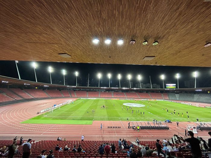 Slik ser det ut på stadion i Sveits rett før avspark.