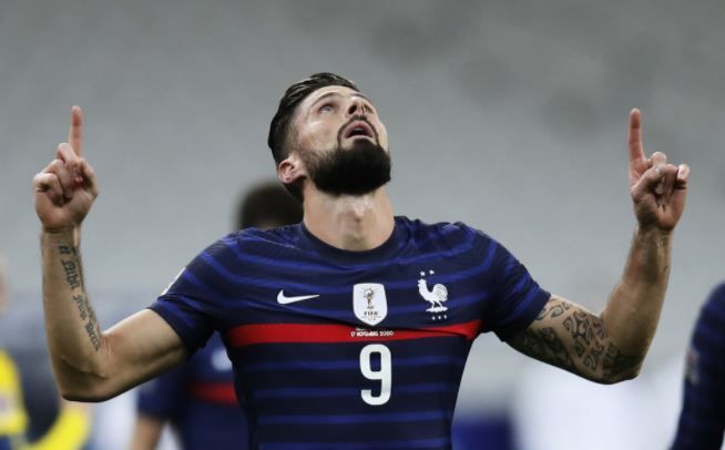 Giroud har gjort jobben - igjen. Hans 43. og 44. landslagsmål. Ser de siste minuttene fra benken.