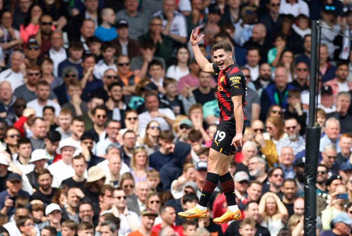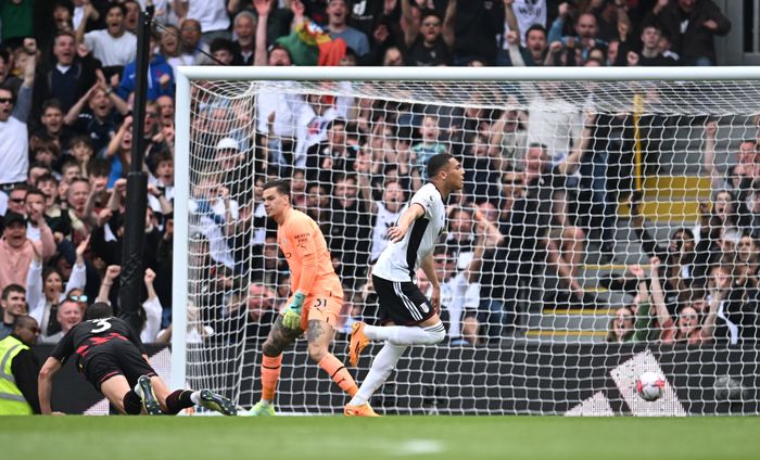 For et mål av argentineren! Mahrez gir Alvarez ballen cirka 30 meter fra Fulham-målet. Han finter unna en motspiller før han bøyer ballen i krysset fra langt hold. En utsøkt scoring!