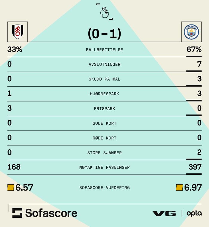 City må finne seg i være storfavoritter. Haaland, Bobb & Co. ligger på 2.-plass på tabellen med 82 poeng - poenget bak Arsenal, men med én kamp mindre spilt. Fulham ligger på 13.-plass med 44 poeng.