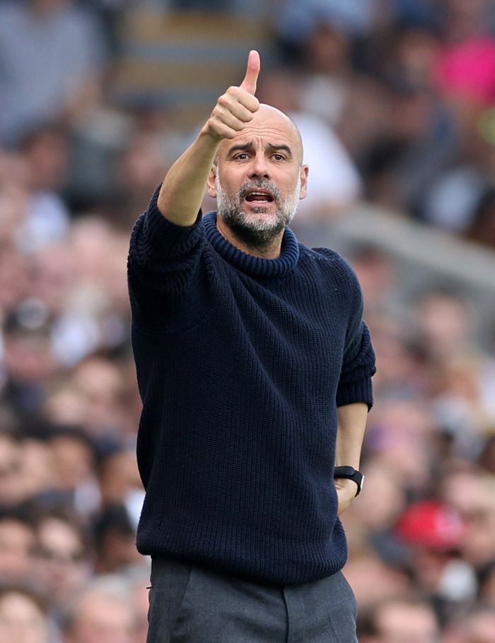 Nytt tommel opp-bilde av Guardiola. Fremdeles tre minutter igjen av tilleggstiden, men City har hatt full kontroll og legger nytt press på Arsenal før deres kamp mot United i morgen.