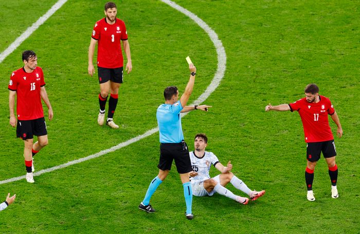 Mekvabishvili får gult kort for å være altfor sent ute inn i Nunes.