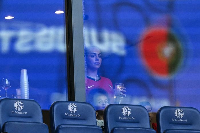 Ronaldos kjæreste Georgina Rodriguez er på plass i Gelsenkirchen. Foto: AFP
