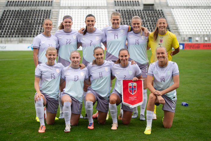 Slik starter Norge (4-2-3-1): Cecilie Fiskerstrand – Thea Bjelde, Ingrid Syrstad Engen, Mathilde Harviken, Marit Bratberg Lund – Lisa Naalsund, Justine Kielland – Signe Gaupset, Frida Maanum, Guro Reiten – Ada Hegerberg