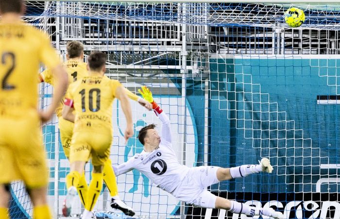 DER SITTER UTLIGNINGEN! Kristiansund straffes for arrogant spill i eget forsvar. Svakt utspill fra McDermott og Glimt vinner ballen. Solbakken spilles frem før han drar seg fri på kanten og legger over til Zinckernagel. Touchet hans er ikke rent, men det blir likevel en pasning til Moberg som lurer ballen lavt forbi McDermott. Keeperen er borti ballen, men klarer ikke å hindre scoring.