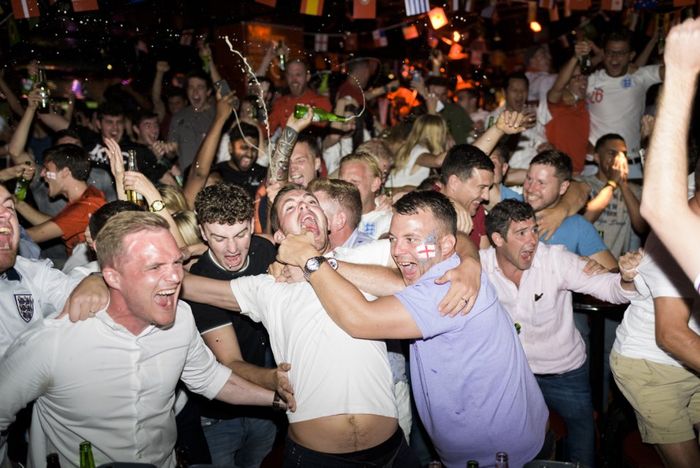 Engelskfansen går amok etter 1-0. Foto: Klaudia Lech, VG.
