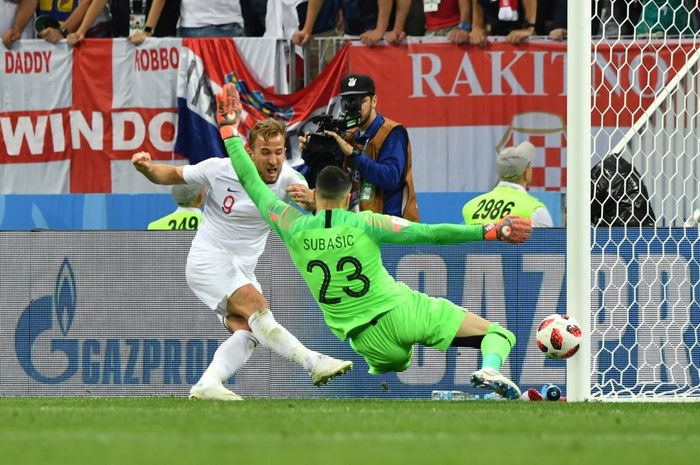 Kane kommer plutselig helt alene med Subasic, men vinkes korrekt av. Uansett bommer Kane grovt.