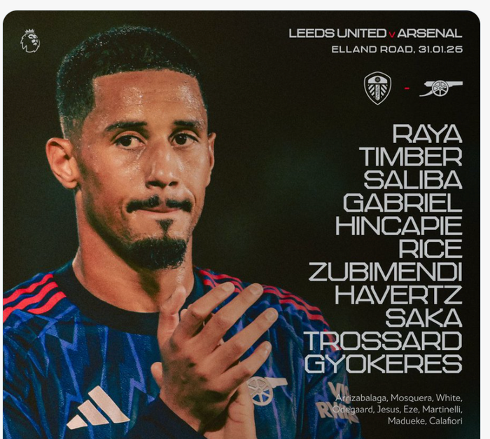 Arsenal stiller med følgende lagoppstilling: Raya - Hincapie, Gabriel, Saliba, Timber - Rice, Zubimendi, Havertz - Trossard, Gyökeres, Saka (K)