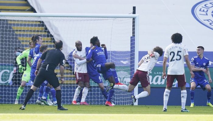 Så får vi omsider hjørnesparket. Leicester får klarert.