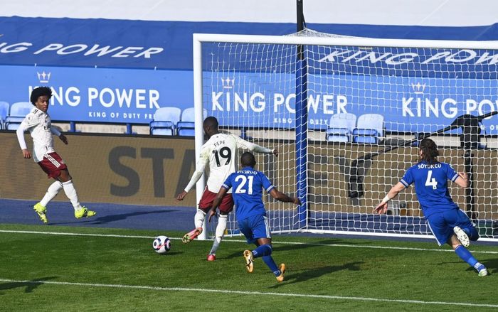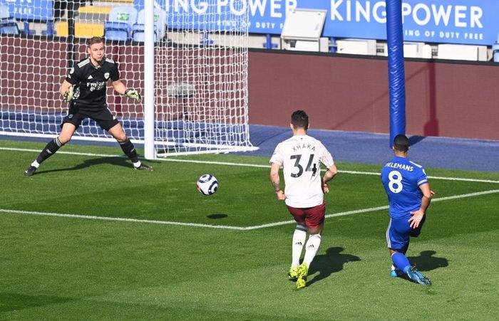 SÅ SITTER DEN! Tielemans snapper ballen foran Willian ute til høyre, , og så setter han fart. Løper fra Xhaka og går for skudd selv fra skrått hold. Banker ballen med strak vrist i det lengste hjørnet, en flott scoring av belgieren! Foto: Reuters.