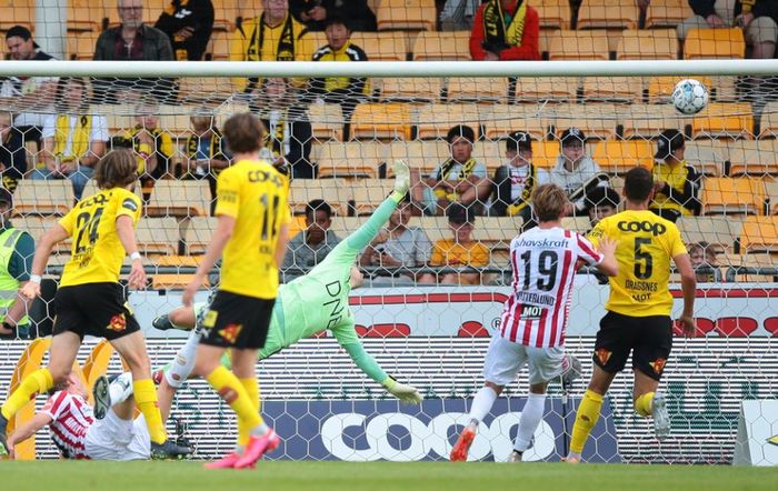 Etter en kort corner til Ibrahimaj, ender ballen på hodet til Pettersson, som header utenfor.