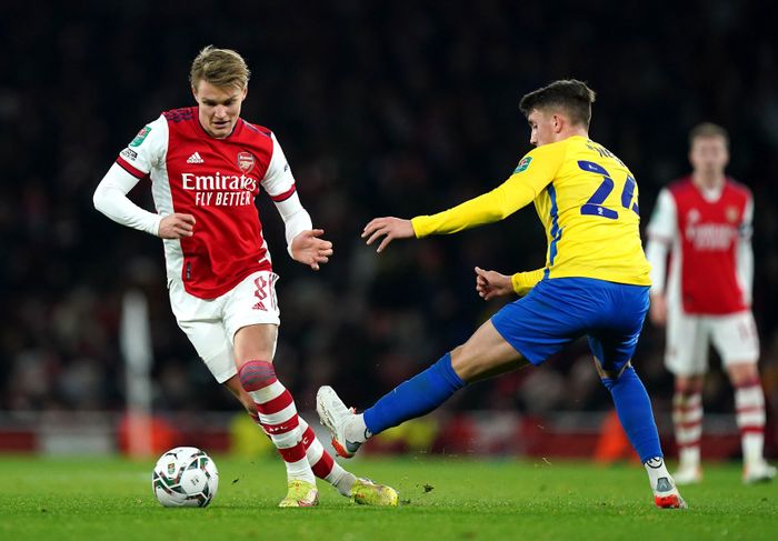 Arsenal bekrefter at Martin Ødegaard har testet positivt for covid-19. Det er altså grunnen til at den norske landslagskapteinen ikke er med i dag. Ødegaard, som er nominert til månedens spiller i Premier League for desember, testet også positivt for covid-19 i september 2020, men testet så negativt på de to påfølgende testene. En antistoff-test viste da at han hadde vært smittet av coronaviruset. Foto: Mike Egerton/PA Photos