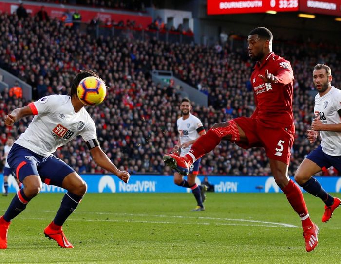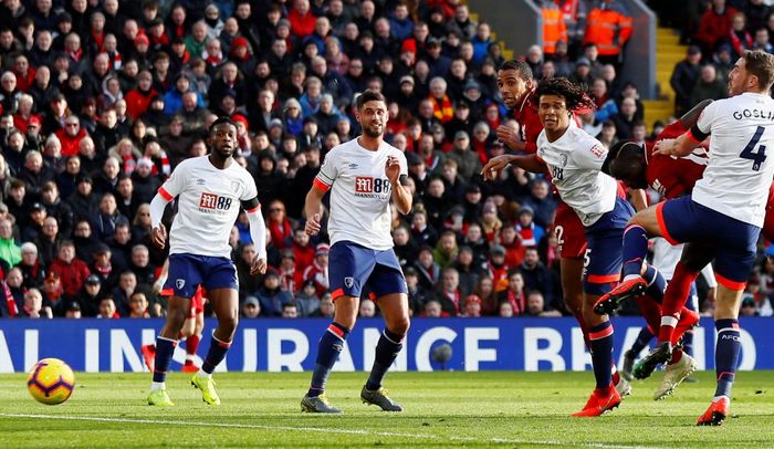 Surman skaffer Bournemouth en corner. Det er vel Matip som roter den over kortlinjen.