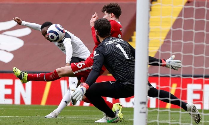 Alexander-Arnolds innleggsforsøk blokkeres. Fulham kontrer, men avslutningen er enkel for Alisson.