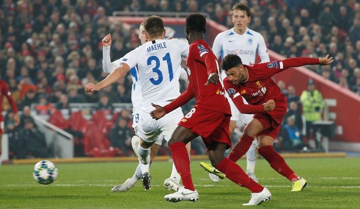 IKKE OXLADE-CHAMBERLENGE SIDEN SIST! Mannen som scoret to i forrige kamp mot Genk, scorer på ny. Mottar ballen av Salah, vender 180 grader opp idet han skyter - og prikker den i hjørnet. 2-1! Foto: REUTERS