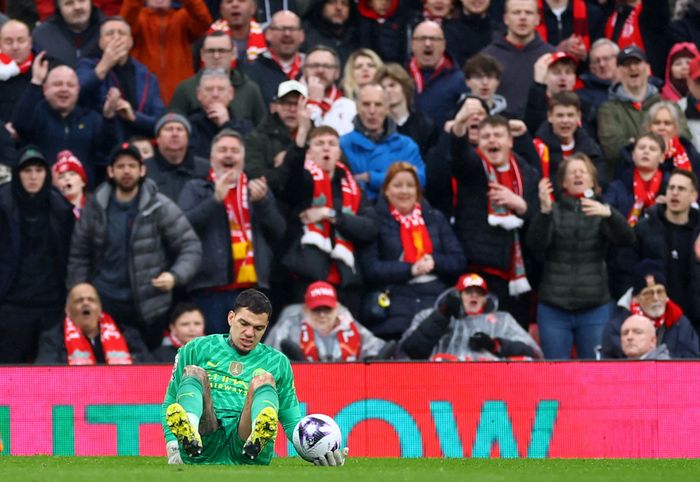For en sjanse for Diaz! Salah involverer seg umiddelbart og slår en perfekt gjennombruddspasning til Diaz. Vingen er alene med Ortega, men får ikke avslutningen mellom stengene! Gigantsjanse! Foto: AFP