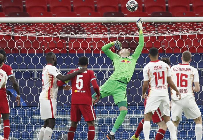 Så kontrer Liverpool. Salah alene igjennom. Keeper gir retur på avslutningen fra noe skrått hold. Mané misser på returen, og så blir det kaos i feltet før det blåses frispark til Leipzig.