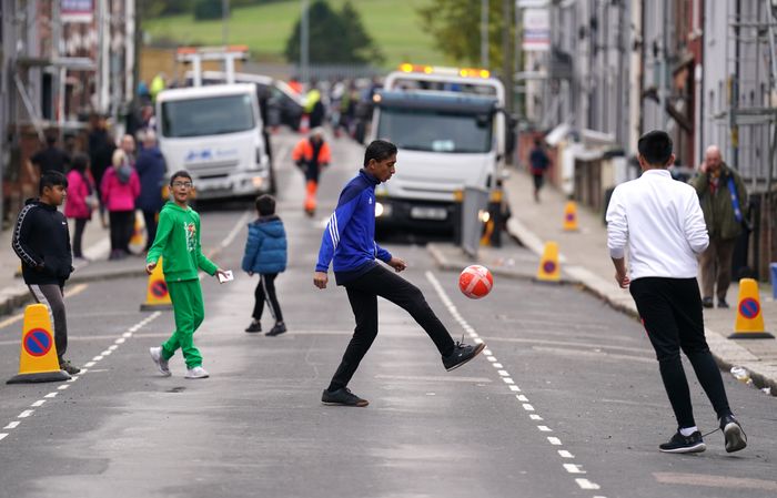 Litt gatefotball utenfor Kenilworth Road i ettermiddag. Foto: Pa Photos.