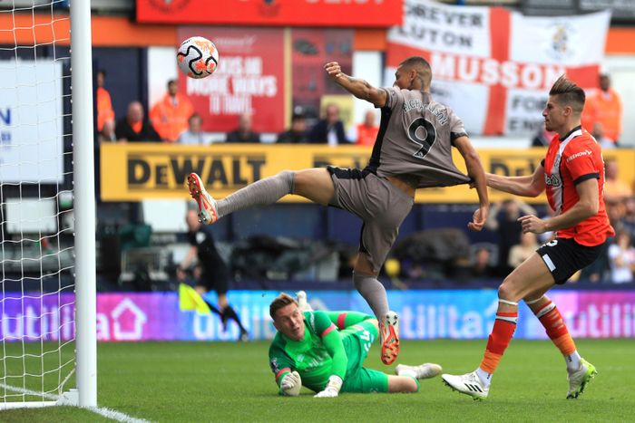 Doughtys hjørnespark finner hodet til Morris, men Luton-spissen får ikke presset headingen på mål.