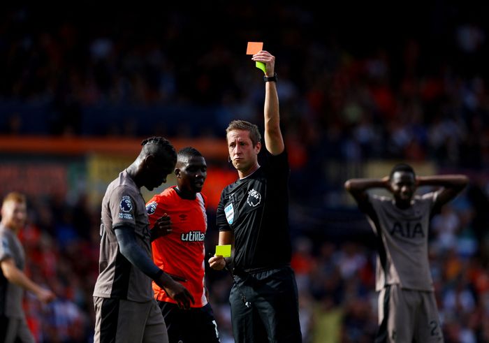 Luton vinner ballen på midten, og Ogbene setter fart. Legges kontant i bakken av Bissouma, og får et klart frispark omtrent ti meter inn på gjestene halvdel.