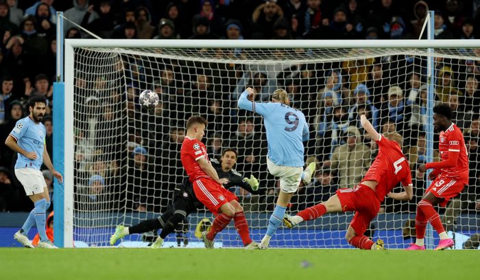 Selvfølgelig må han i målprotokollen! Stones header inn på femmeteren, der Bayern-forsvaret har glemt Haaland. Han stormer fram og setter ballen sikkert i mål med høyrefoten.