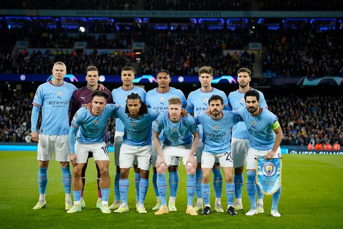 Manchester Citys lag: Ederson - Stones, Akanji, Dias, Aké - De Bruyne, Rodri, Gündogan - Bernardo Silva, Haaland, Grealish.