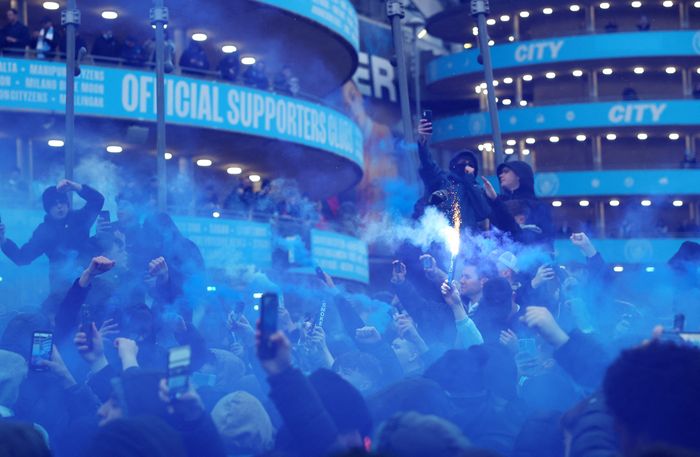 Stor stemning utenfor Etihad før kampen. Foto: Reuters