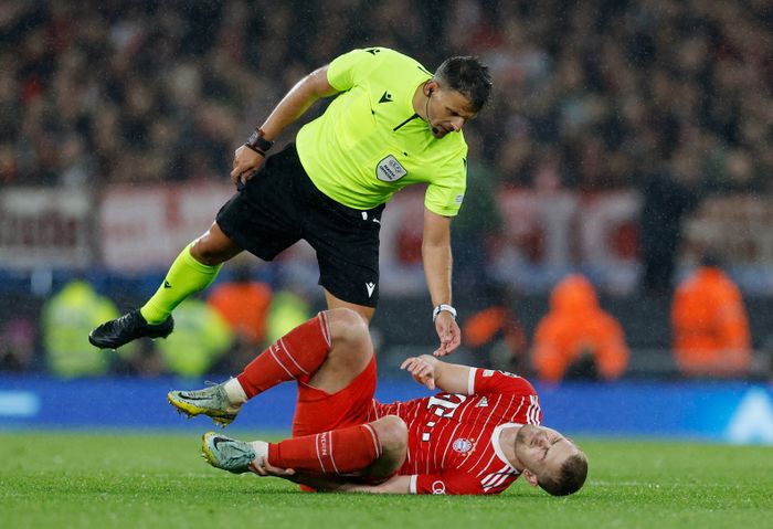 Bayern spiller med en mann mindre. De Ligt behandles. Prøver de å unngå bytte fram til pause?