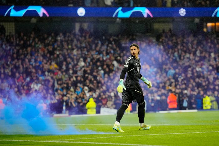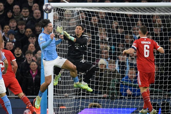 City-spilleren Jack Grealish og Bayern-målmann Yann Sommer i duell. Foto: AFP
