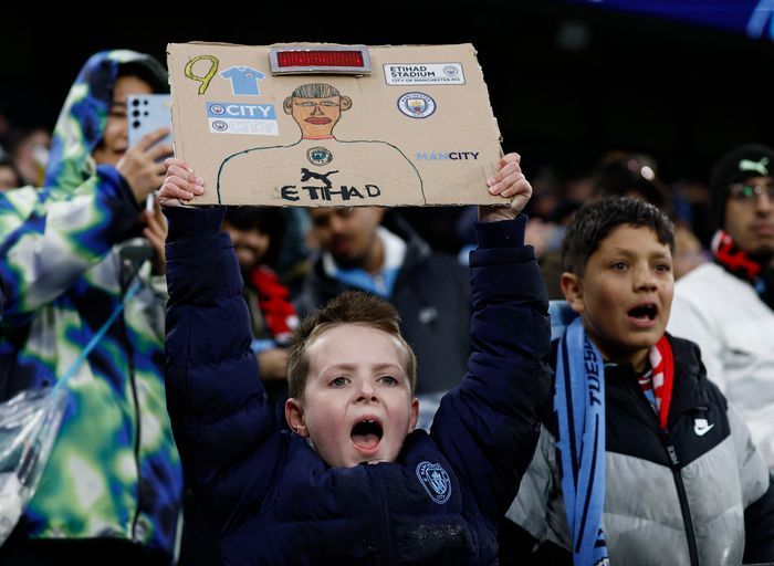 Ingen tvil om hvem som er den store helten hos denne pjokken på Etihad tirsdag kveld. Foto: Reuters