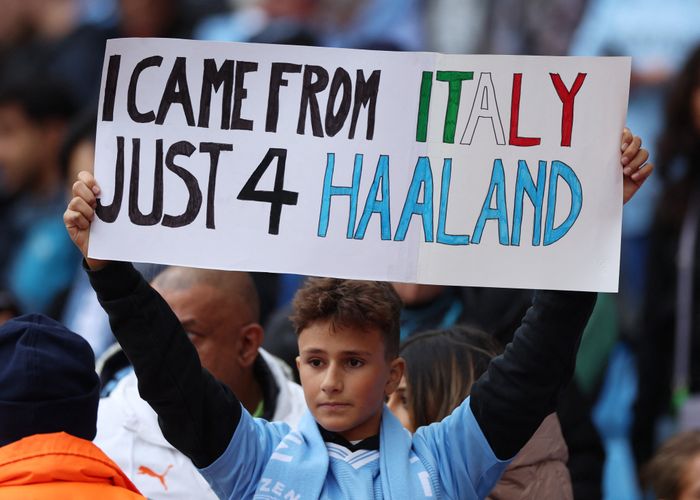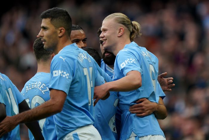Haaland starter som forventa for Manchester City. Oscar Bobb er ikke på benken.