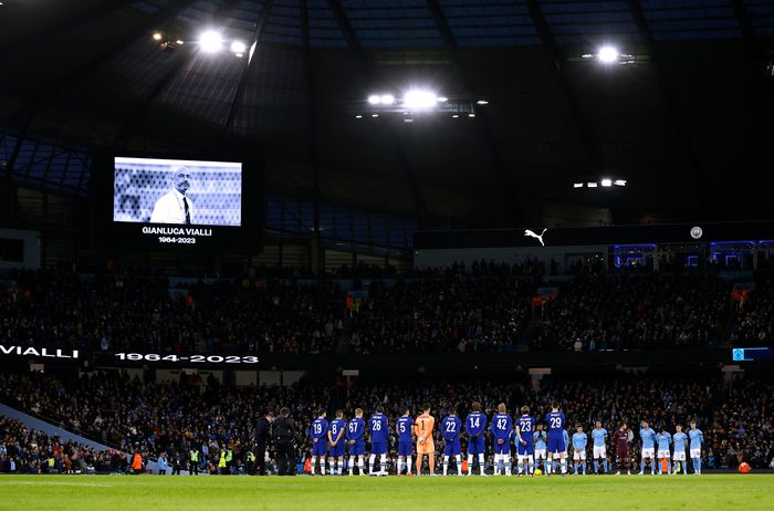 Så samles også spillerne rundt midtsirkelen i en Gianluca Vialli-hyllest.