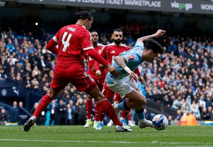 City roper på straffe i det Cherki går i bakken. Blir hindret av Kerkez i det han skal avslutte, men ser ut til at Liverpool-backen tar ball.