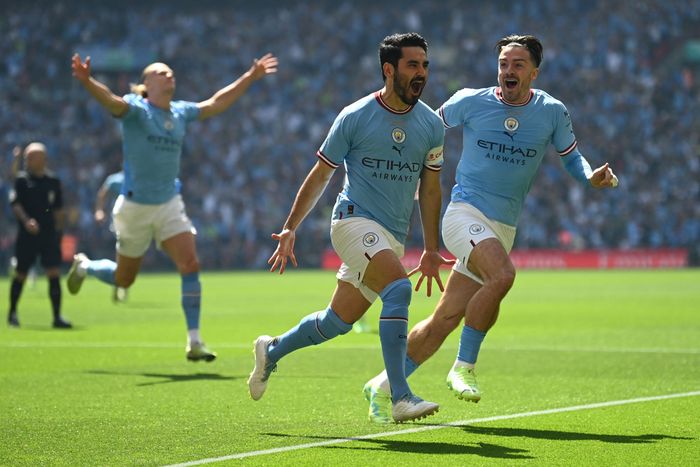 HVA ER DET SOM SKJER?! Gündogan banker inn tidenes raskeste scoring i en FA-cupfinale! Det er en nydelig scoring! Fra avspark spilles ballen tilbake til Ortega, som sender den langt opp på Haaland. Han header mot De Bruyne, men Lindelöf header ut via hodet til De Bruyne. Like utenfor feltet står Gündogan, som på volley sender den vakkert i nettet! WOW! Foto: AFP