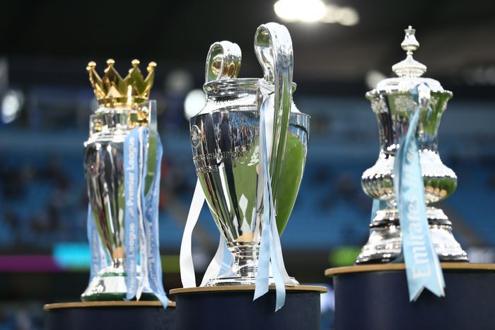 The Treble-bragden til Manchester City forrige sesong markeres i minuttene før avspark her. Foto: EPA.