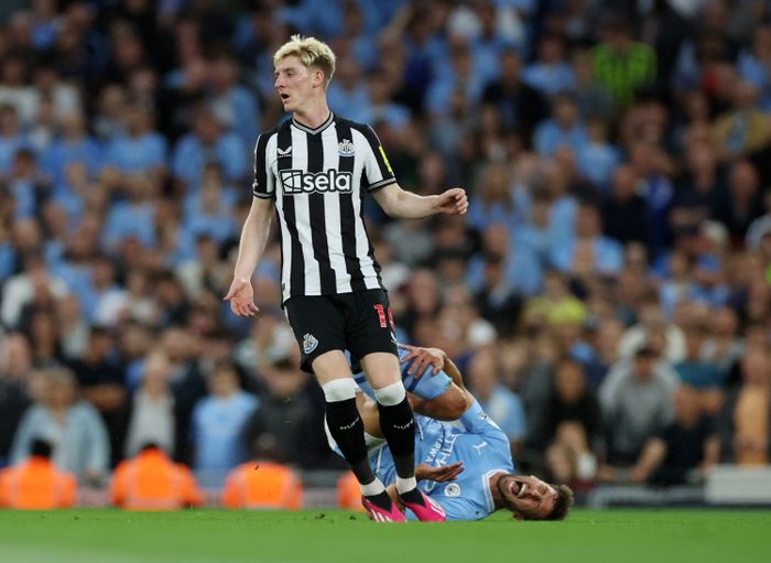 Det trøkkes til utpå her nå! Først Gordon og Dias som smeller sammen, men spillet fortsetter. Så er det Joelinton som feller Foden på vei fremover på midten.