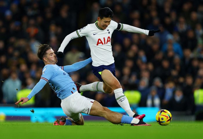 Grealish takler Son, som misbruker en gigantisk kontringsmulighet. Fin defensiv inngripen av vingen.