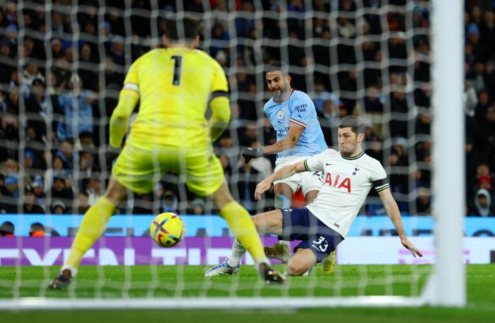 Mahrez utnytter en stygg feil av Lenglet. Tottenham-spilleren prøver å dempe et langt utspill fra Ederson, men glipper ballen og Mahrez er plutselig alene med keeper. City-spilleren løfter ballen enkelt i mål!