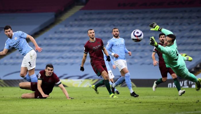 Traore prøver seg på et skudd, men det blir blokkert. Ederson plukker opp ballen ved dødlinjen.