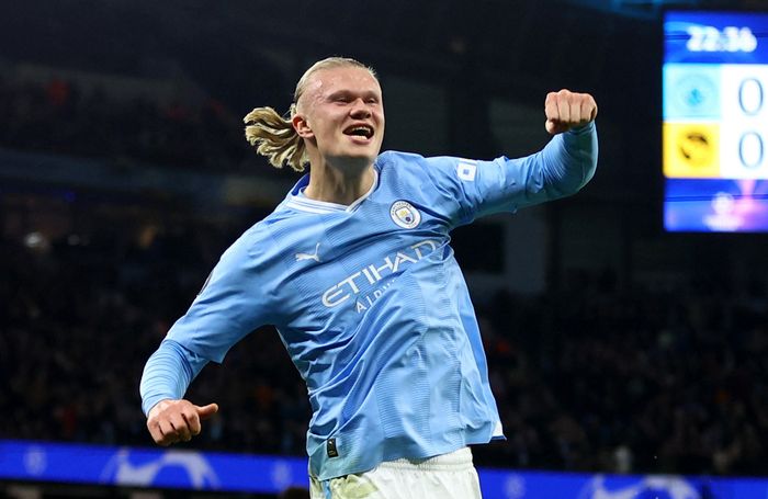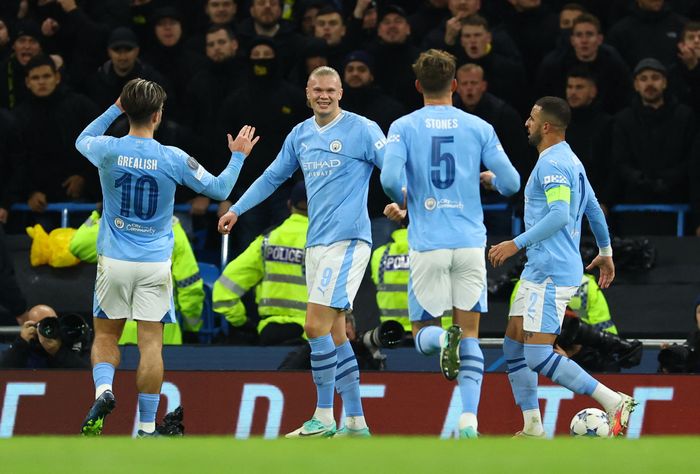 Haaland har hatt en stor kamp. Her feirer han mål sammen med Josko Gvardiol og Mateo Kovacic. foto: Reuters