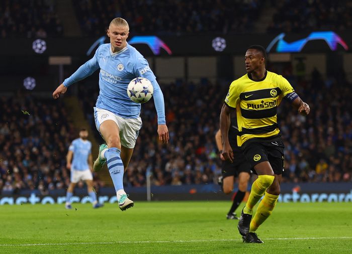 Erling Braut Haaland scoret to ganger i bortekampen mot Young Boys (3-1-seier).