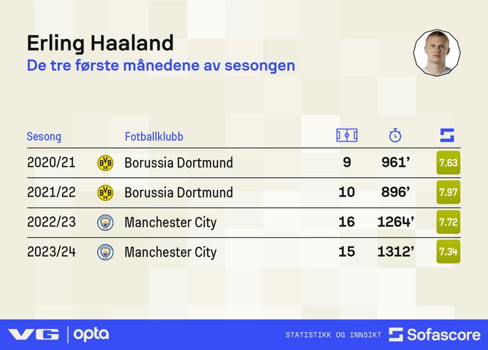 Haaland friskmeldt og klar. Scorer sitt tredje mål i Champions League denne sesongen. Alle målene er kommet mot Young Boys.