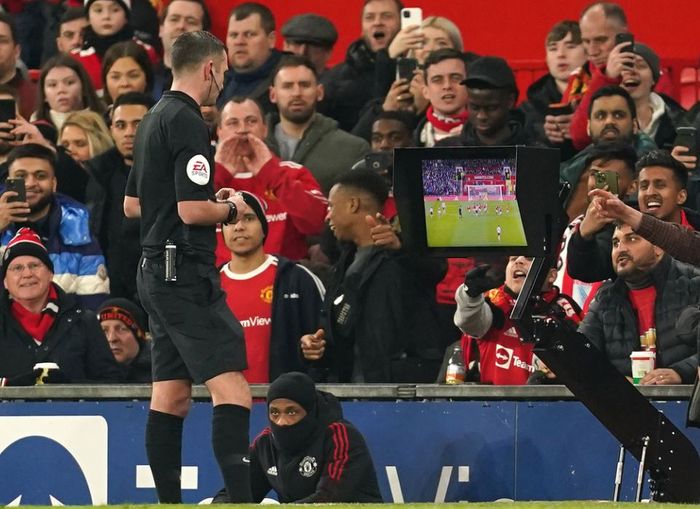 Dommeren kan jo blåse for et sperretrekk mot Cavani. Det er jo frispark til United.