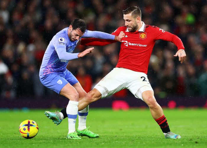 Adam Smith (t.v.) og Luke Shaw i duell på Old Trafford. Foto: Reuters