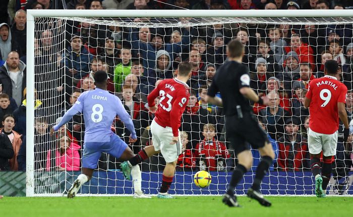 Shaw starter og avslutter kontringen selv. Fernandes og Garnacho bidrar sterkt i det glitrende angrepet. Shaw bredsider inn 2-0.